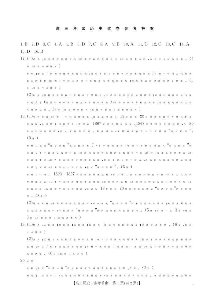 辽宁省辽阳市2025届高三上学期1月期末考试历史答案