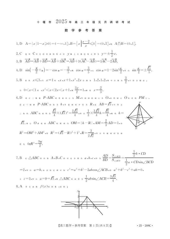 湖北省十堰市2025年高三年级元月调研考试数学答案