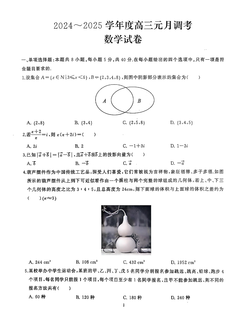 湖北省武汉市江岸区2025届高三上学期1月期末考试数学