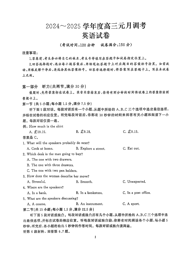 湖北省武汉市江岸区2025届高三上学期1月期末考试英语