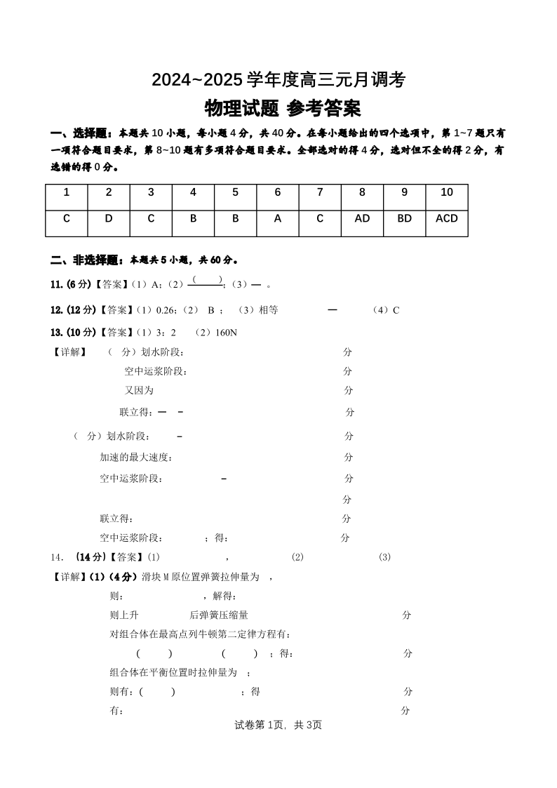 湖北省武汉市江岸区2025届高三上学期1月期末考试物理答案