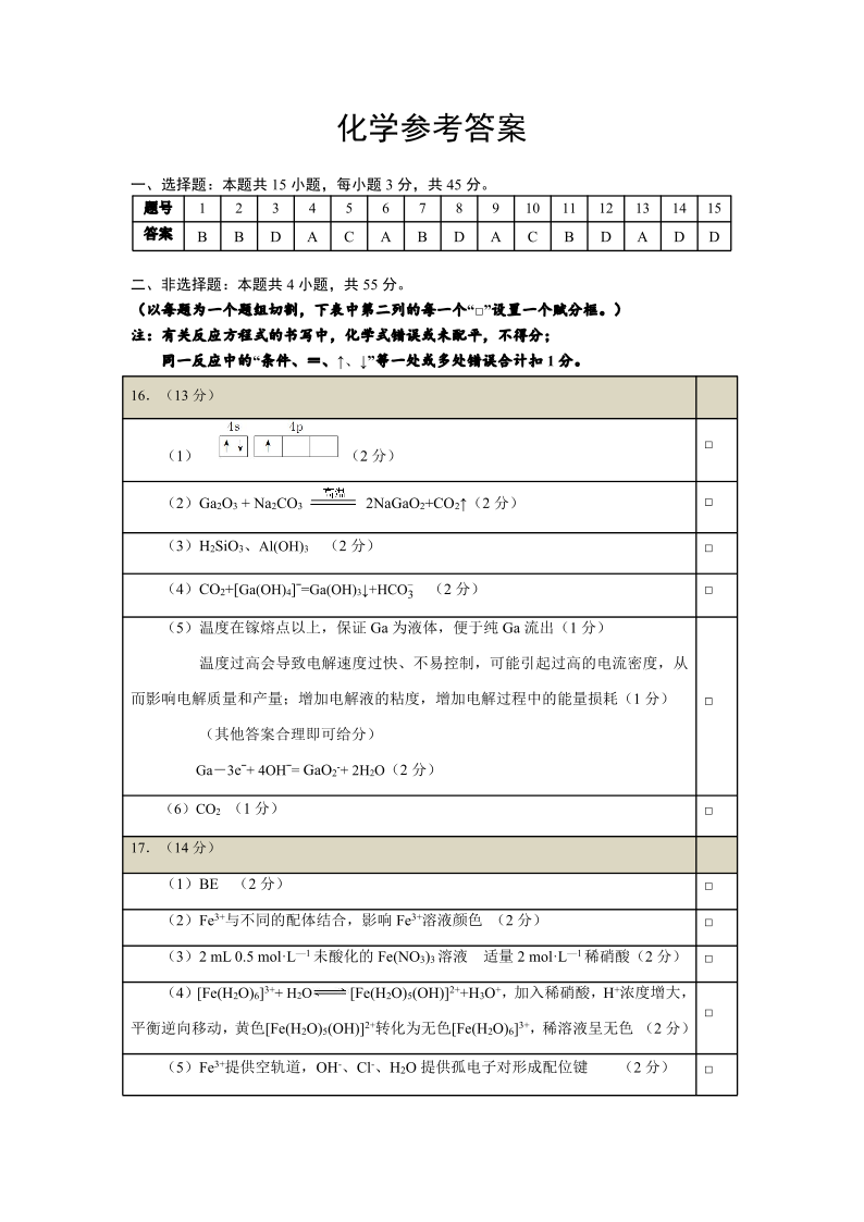 湖北省武汉市江岸区2025届高三上学期1月期末考试化学答案