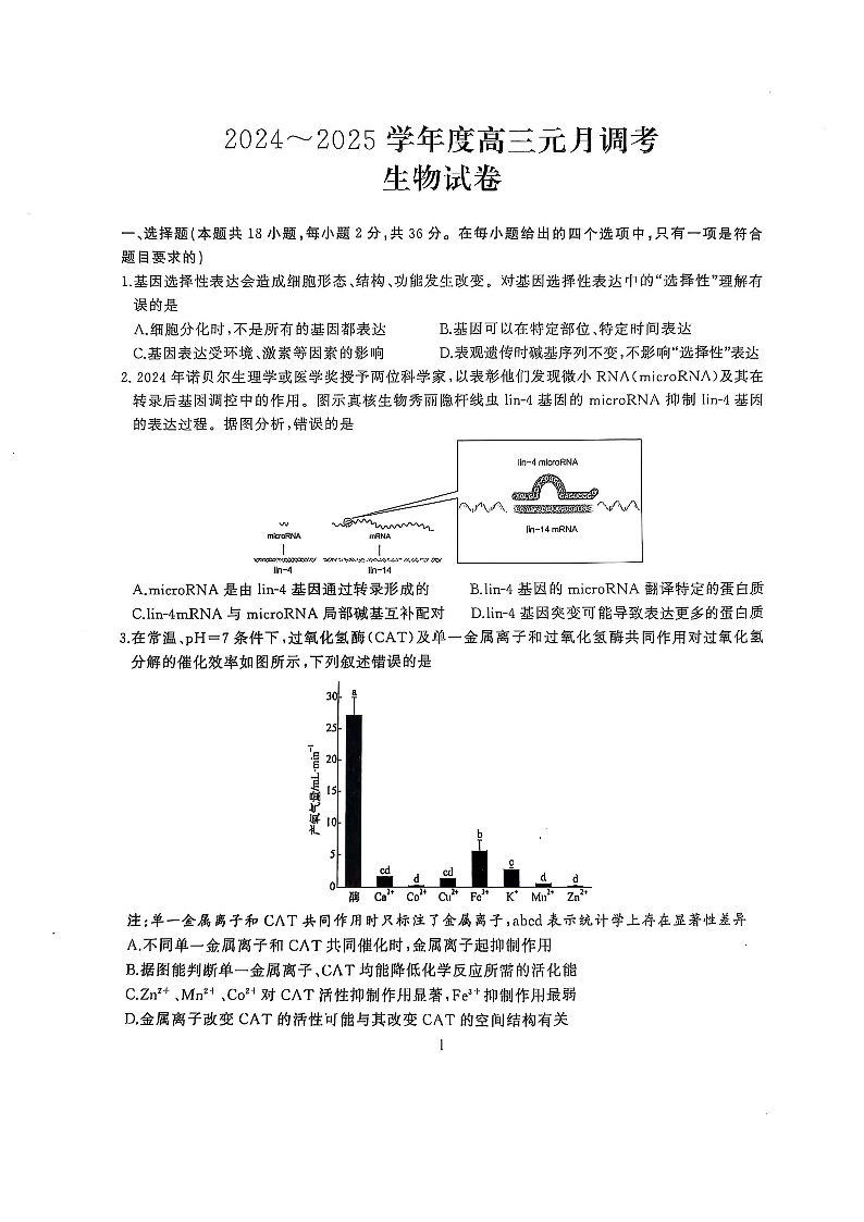 湖北省武汉市江岸区2025届高三上学期1月期末考试生物