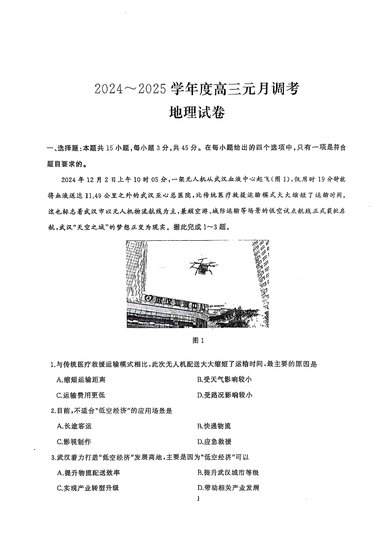 湖北省武汉市江岸区2025届高三上学期1月期末考试地理