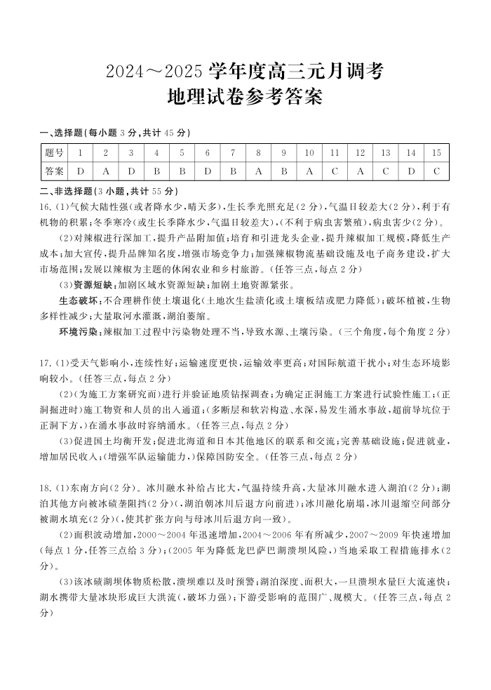 湖北省武汉市江岸区2025届高三上学期1月期末考试地理答案