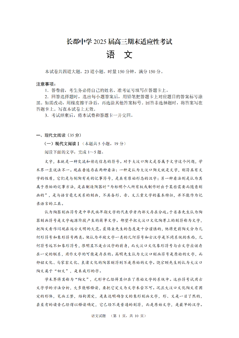 湖南省长沙市长郡中学2025届高三上学期1月期末考试语文