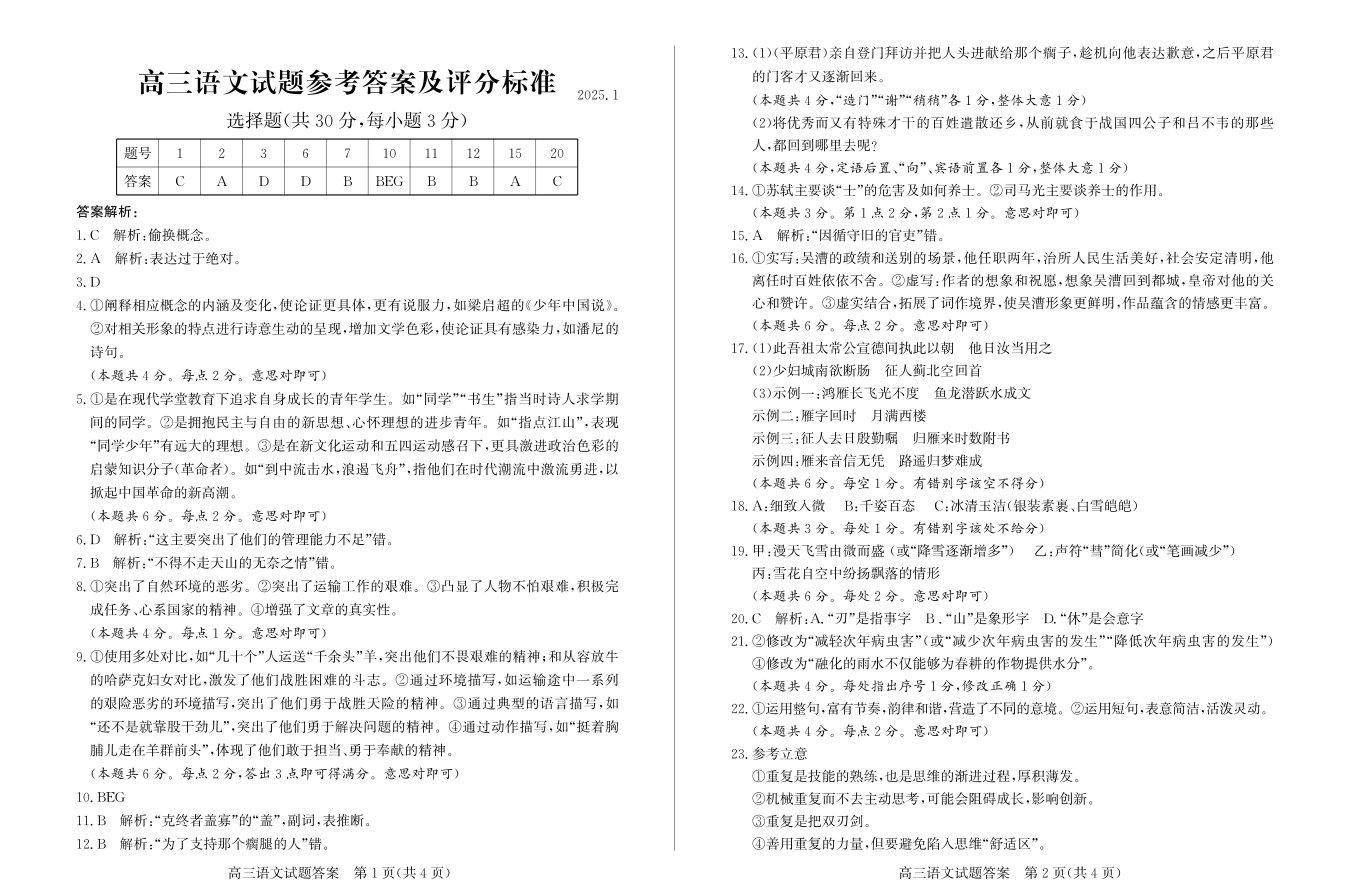 山东省滨州市2025届高三上学期1月期末考试语文答案