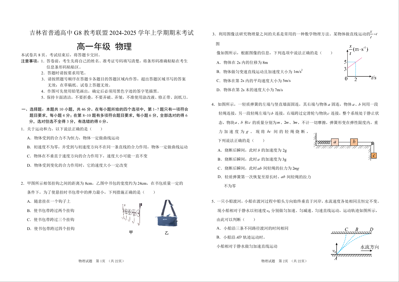 吉林省普通高中G8教考联盟2024-2025学年高一上学期期末考试物理+答案