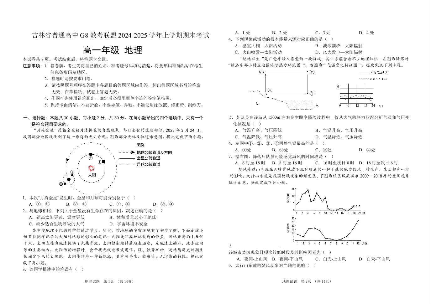 吉林省普通高中G8教考联盟2024-2025学年高一上学期期末考试地理+答案