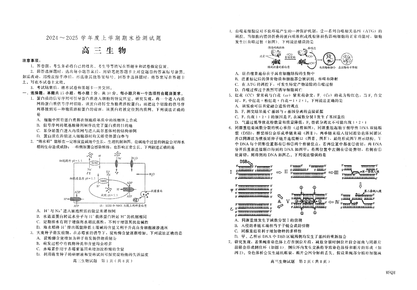 山东省潍坊市2024-2025学年第一学期高三期末考试生物