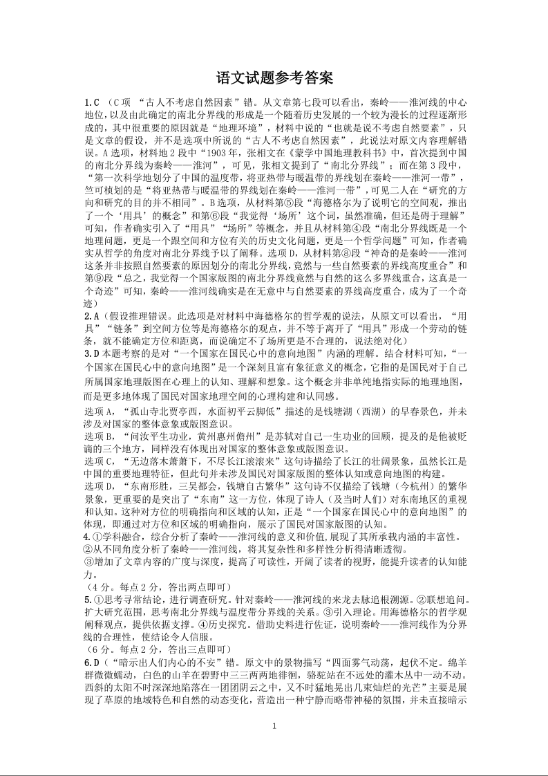 山东省潍坊市2024-2025学年第一学期高三期末考试语文答案