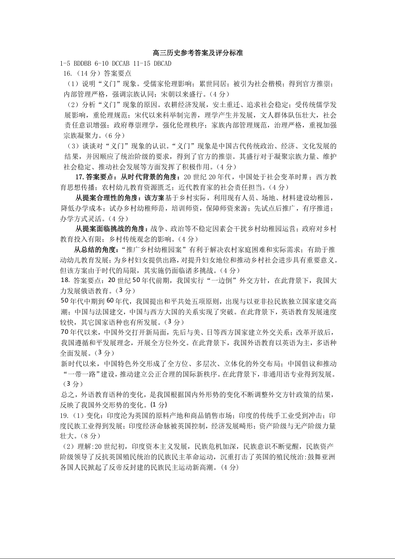 山东省潍坊市2024-2025学年第一学期高三期末考试历史答案