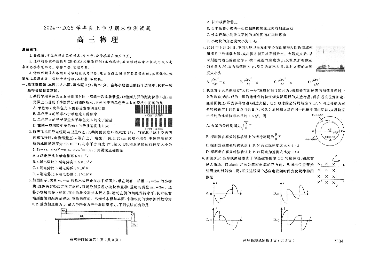 山东省潍坊市2024-2025学年第一学期高三期末考试物理