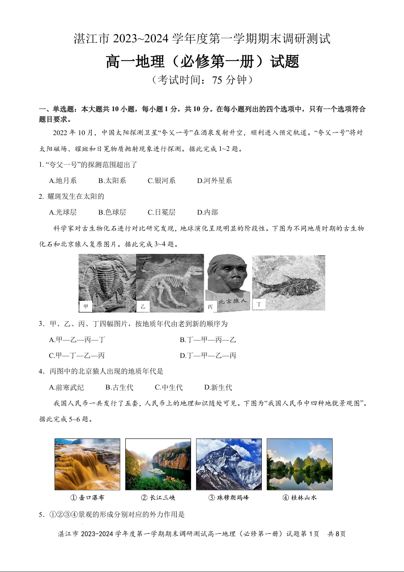 广东省湛江市2023-2024学年高一上学期期末考试地理
