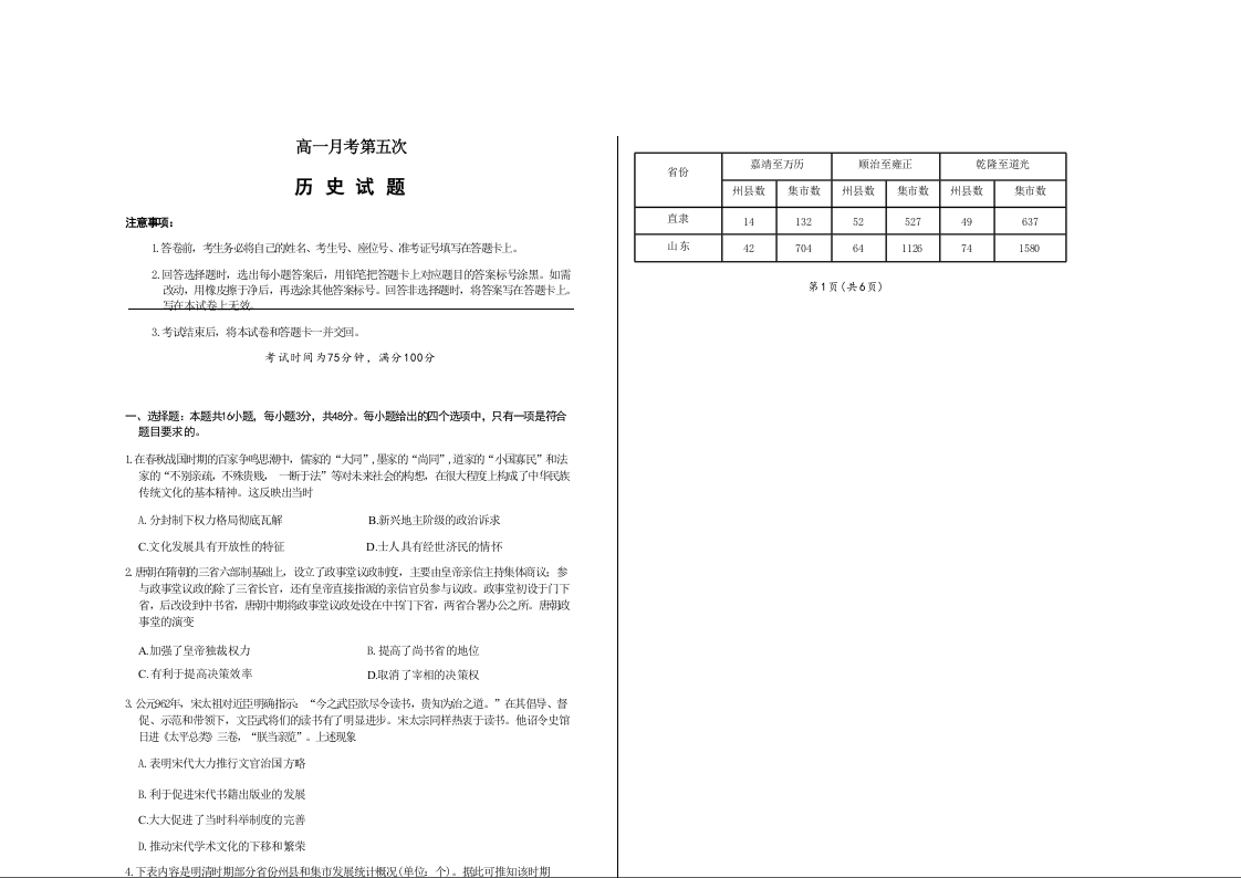 河北省衡水中学2023-2024学年高一上学期1月期末考试历史