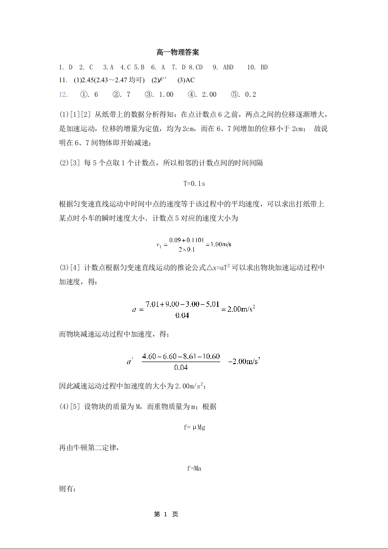 河北省保定市部分学校2023-2024学年高一上学期1月月考物理答案