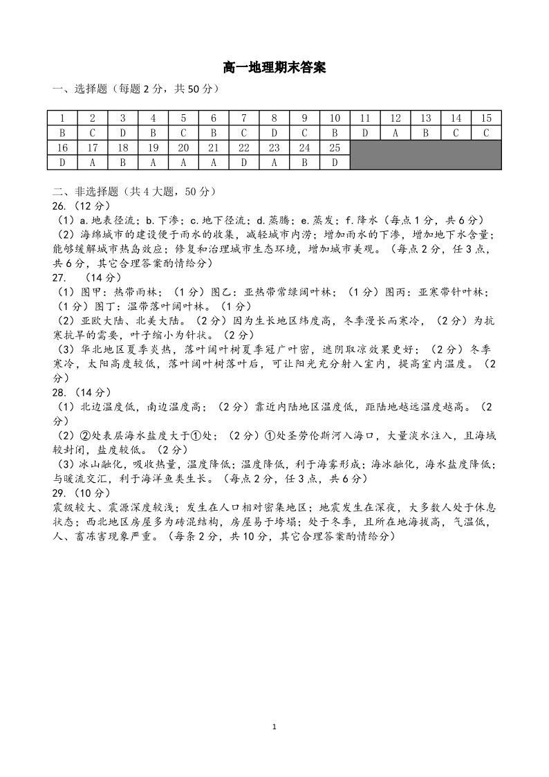 河南省开封市2023-2024学年高一上学期期末考试地理答案