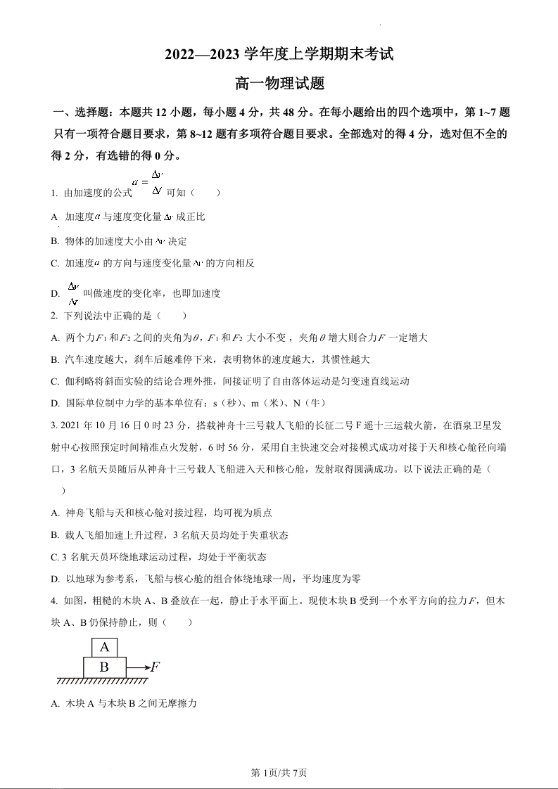 黑龙江省齐齐哈尔市第八中学校2022-2023学年高一上学期1月期末考试物理(原卷版)
