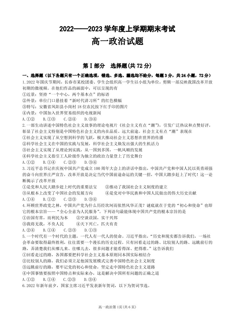 黑龙江省齐齐哈尔市第八中学校2022-2023学年高一上学期1月期末考试政治