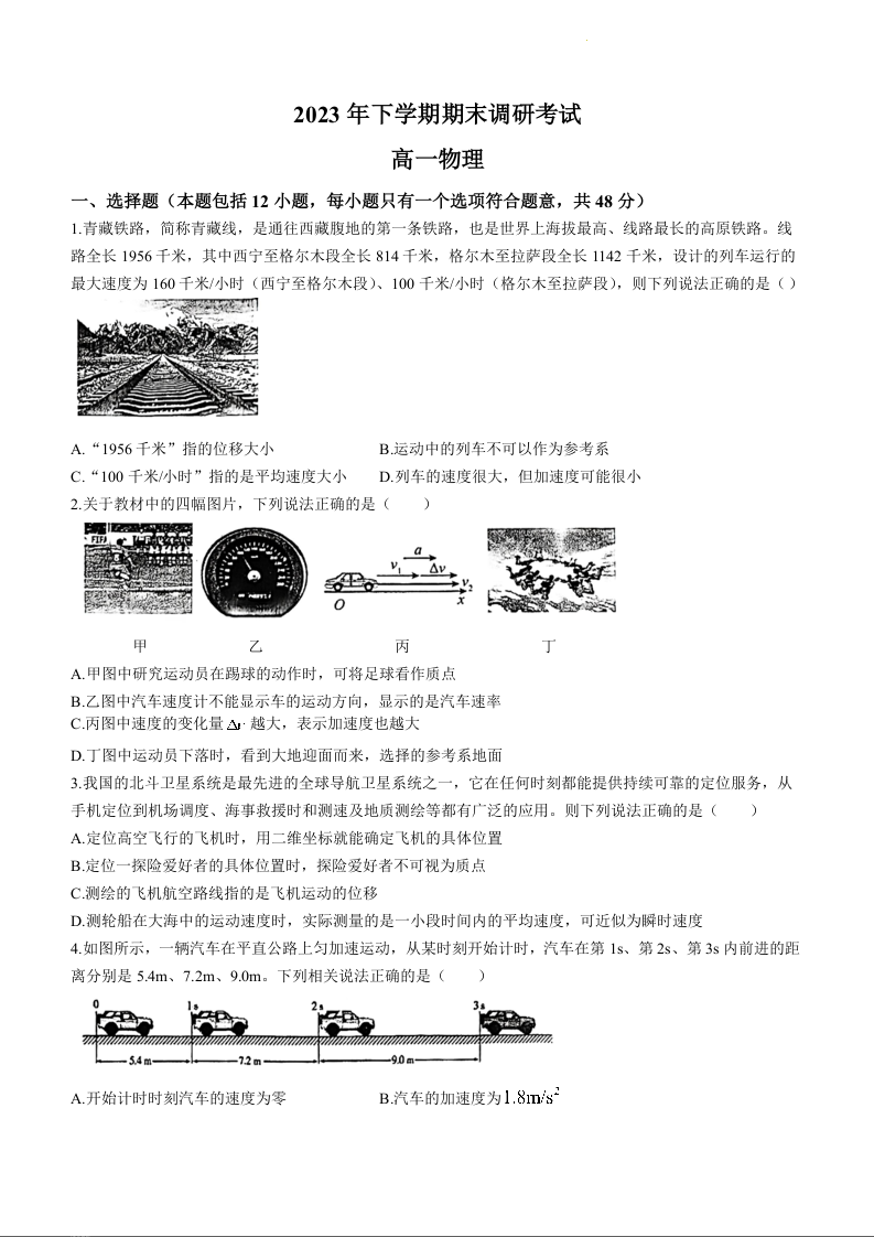 湖南省长沙市宁乡市2023-2024学年高一上学期期末考试物理