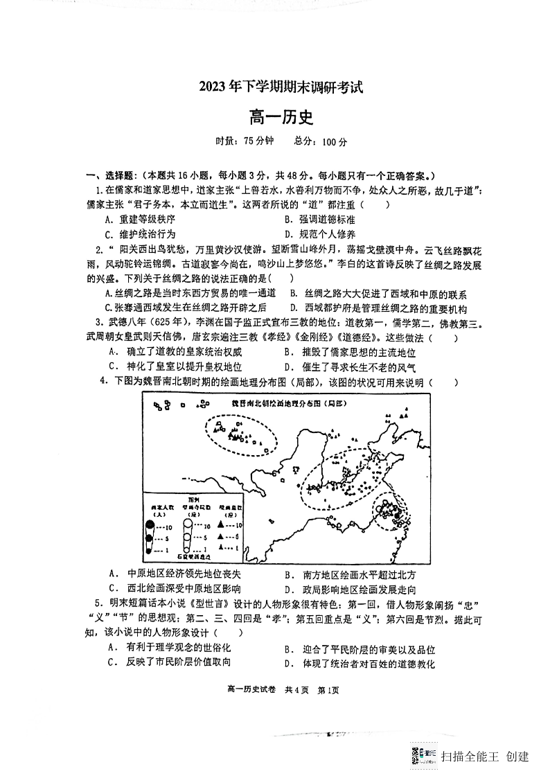 湖南省长沙市宁乡市2023-2024学年高一上学期期末考试历史