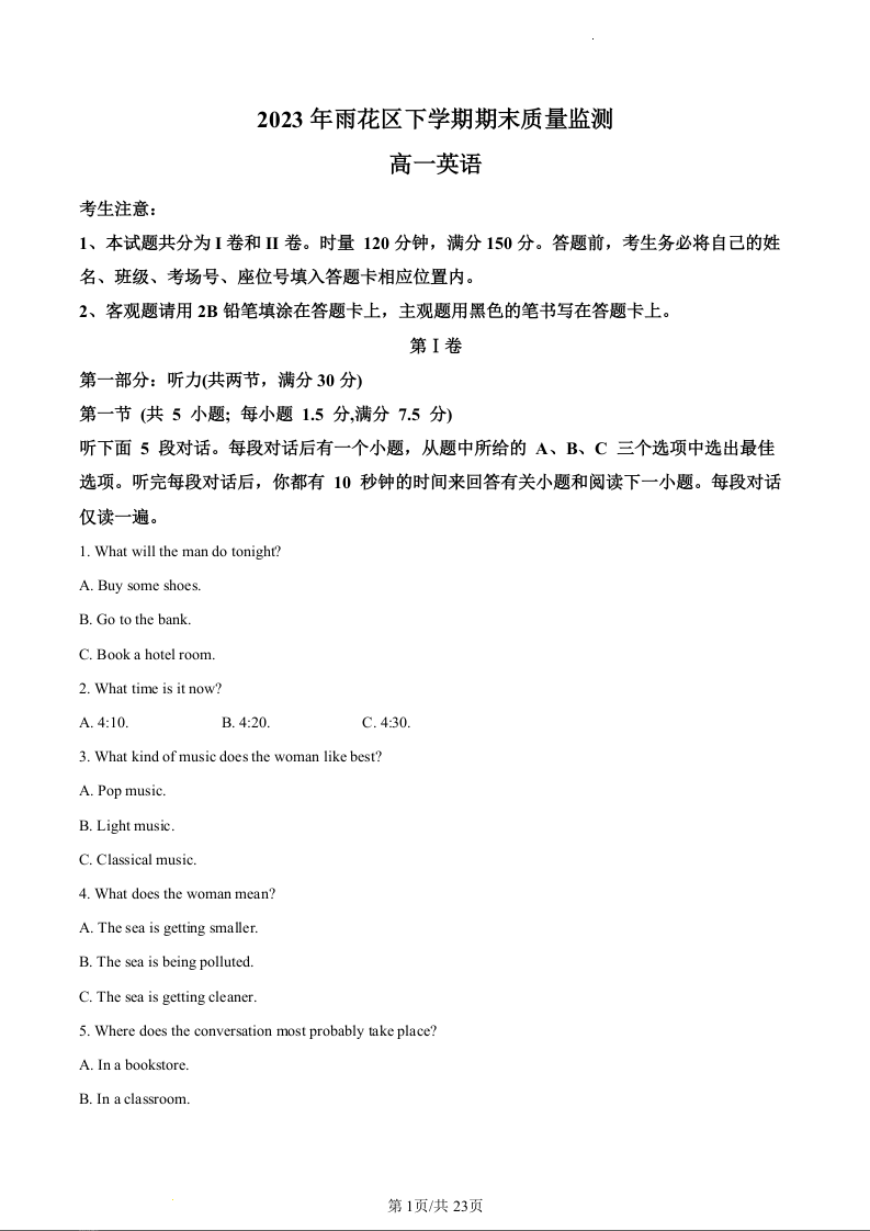 湖南省长沙市雨花区2023-2024学年高一上学期期末考试英语(精品解析版)