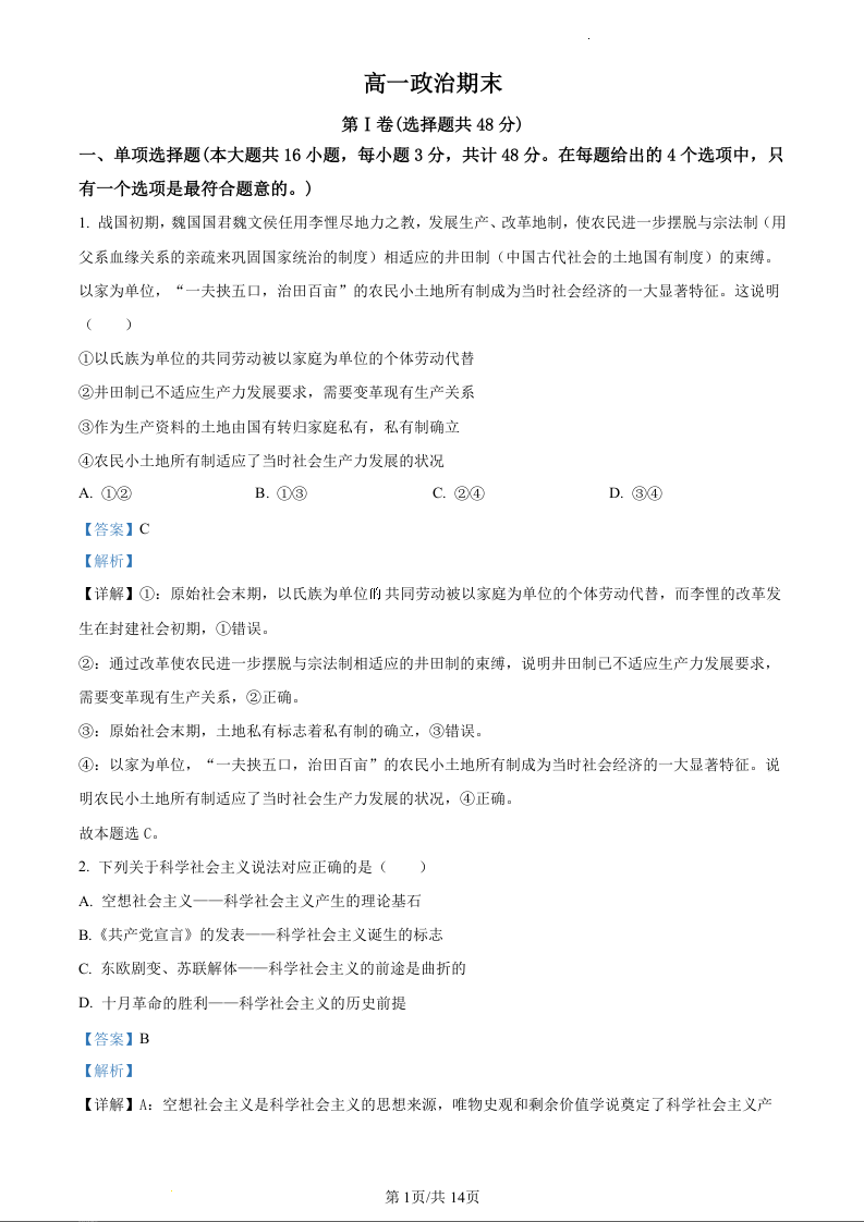 吉林省通化市梅河口市第五中学2023-2024学年高一上学期1月期末考试政治(精品解析版)
