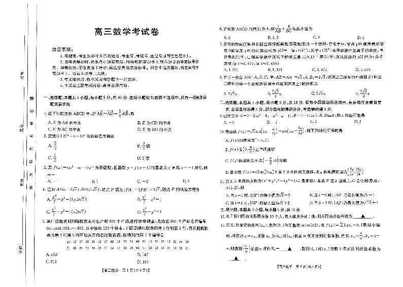 辽宁省部分学校2024-2025学年上学期1月高三期末联考数学