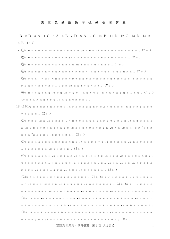 辽宁省部分学校2024-2025学年上学期1月高三期末联考政治答案