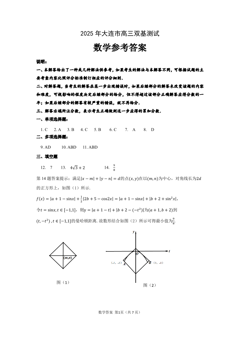 2辽宁省大连市2024-2025学年上学期1月高三双基测试数学答案