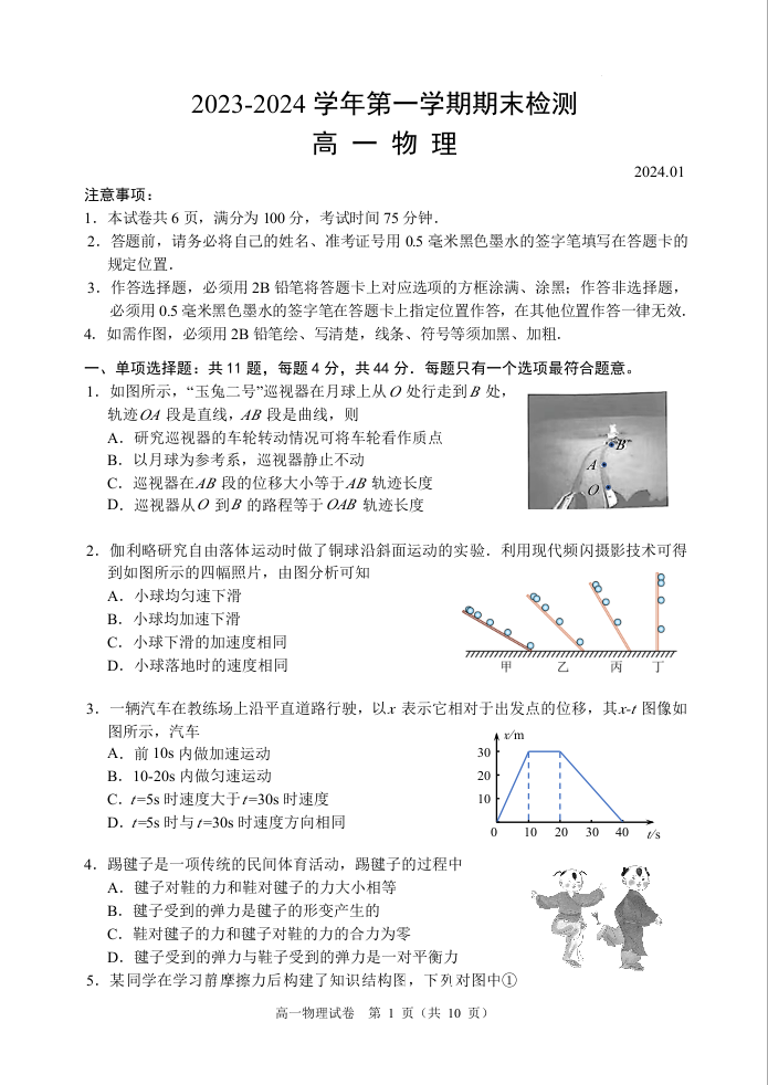 江苏省扬州市2023-2024学年高一上学期期末考试物理+答案