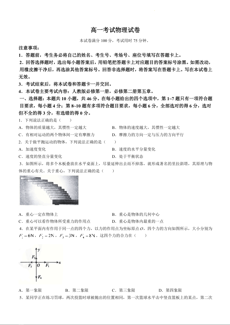 辽宁省辽阳市2023-2024学年高一上学期1月期末考试物理+答案