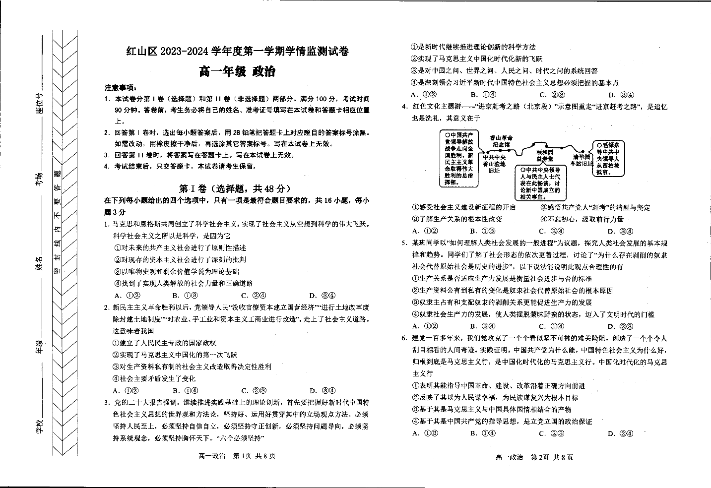 内蒙古自治区赤峰市红山区2023-2024学年高一上学期1月期末测试政治+答案