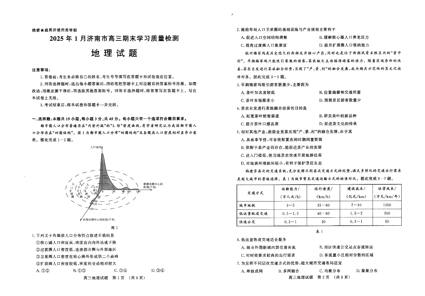 山东省济南市2024-2025学年上学期1月高三期末学习质量检测地理