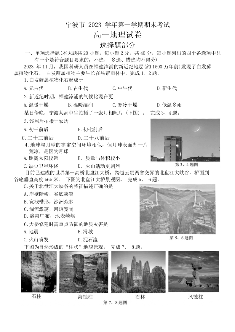 浙江省宁波市 2023 学年第一学期期末考试地理