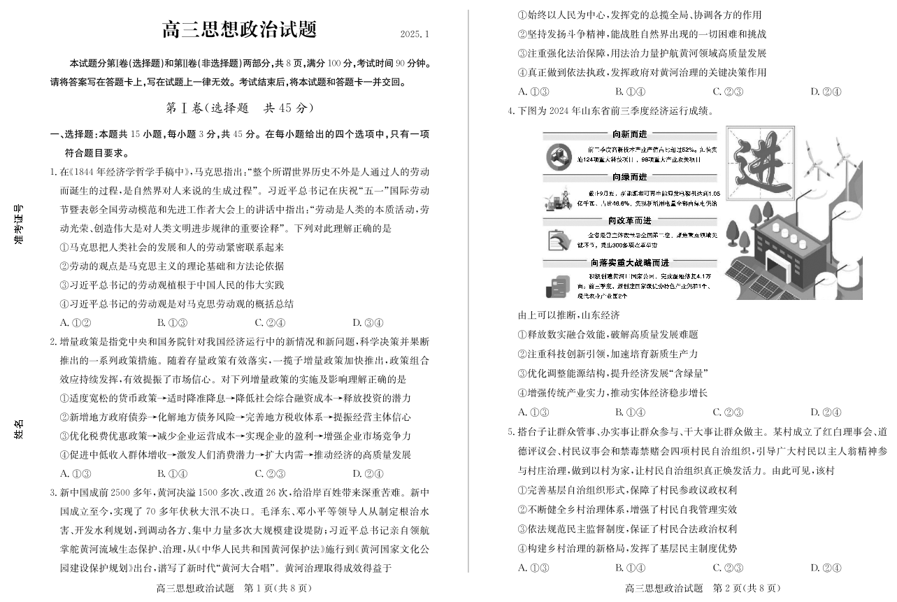 山东省德州市2024-2025学年上学期1月高三期末考试政治