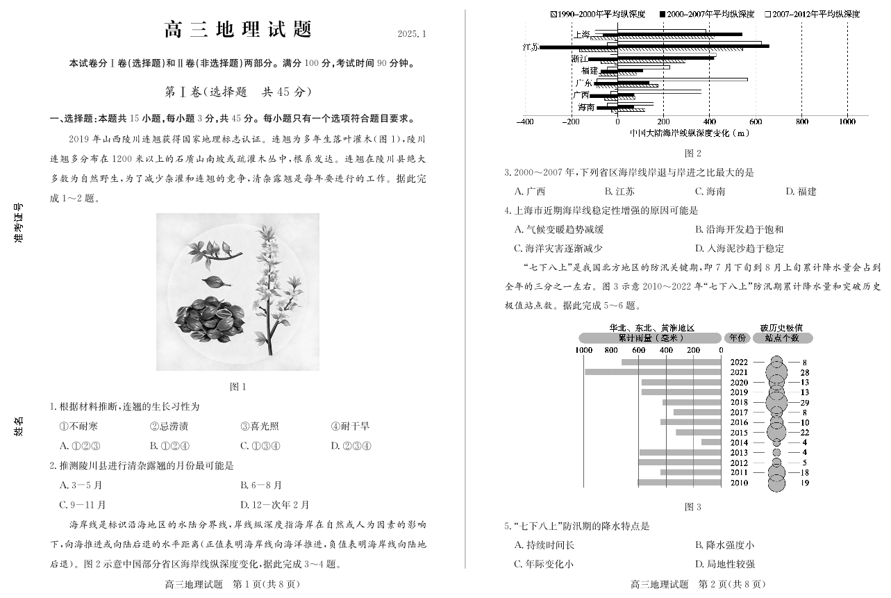 山东省德州市2024-2025学年上学期1月高三期末考试地理