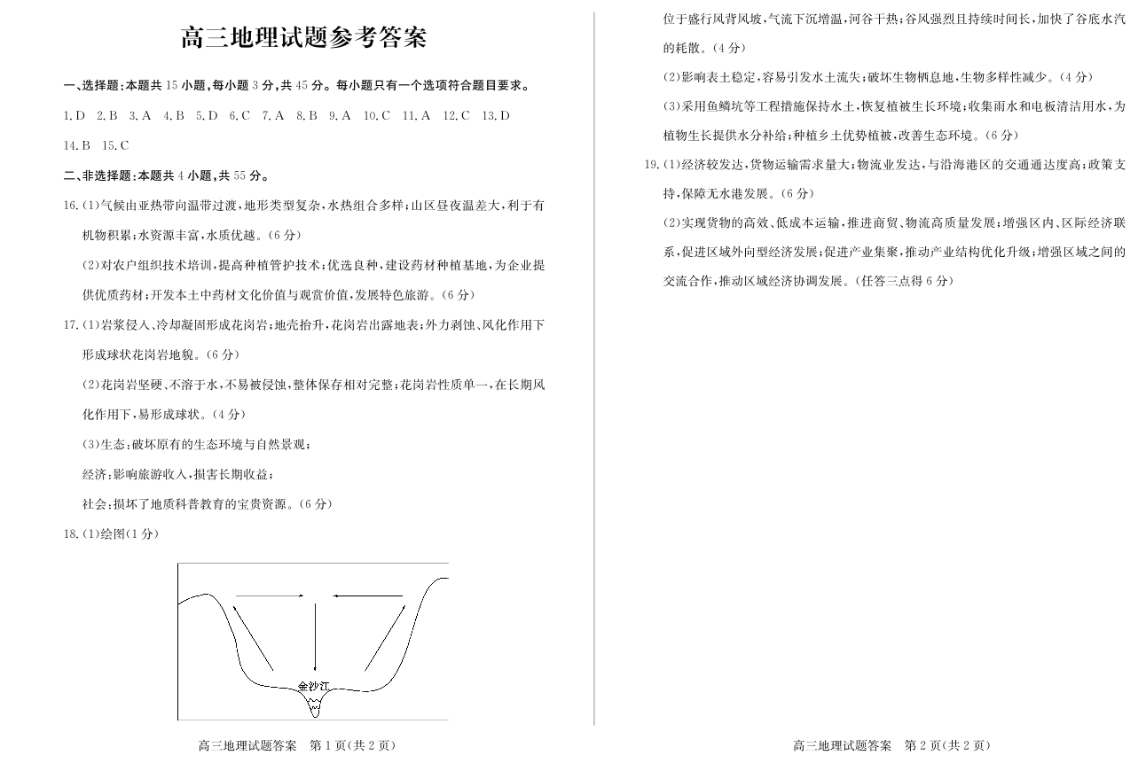 山东省德州市2024-2025学年上学期1月高三期末考试地理答案