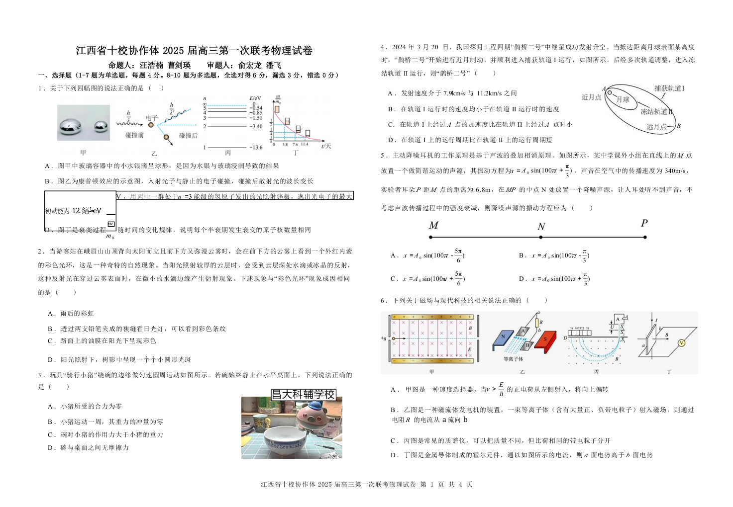 江西五市十校联考暨十校协作体2025届高三第一次联考物理