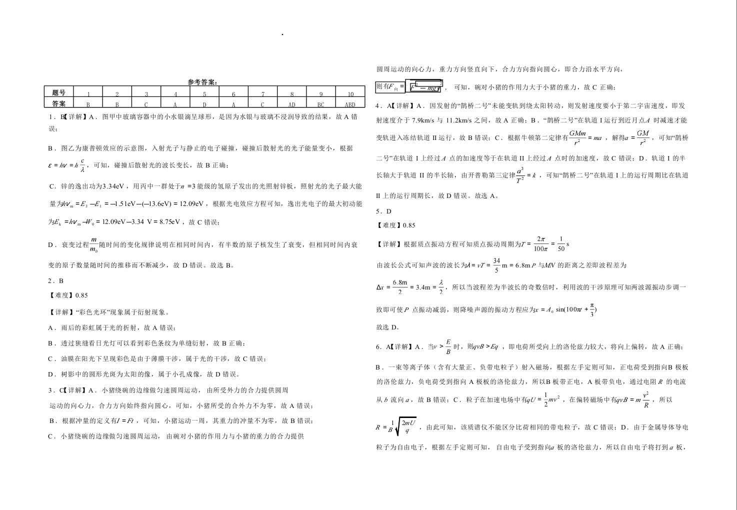 江西五市十校联考暨十校协作体2025届高三第一次联考物理答案