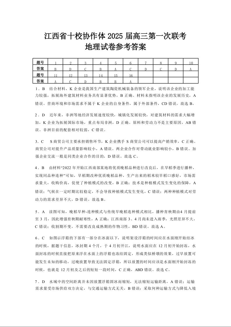 江西五市十校联考暨十校协作体2025届高三第一次联考地理答案