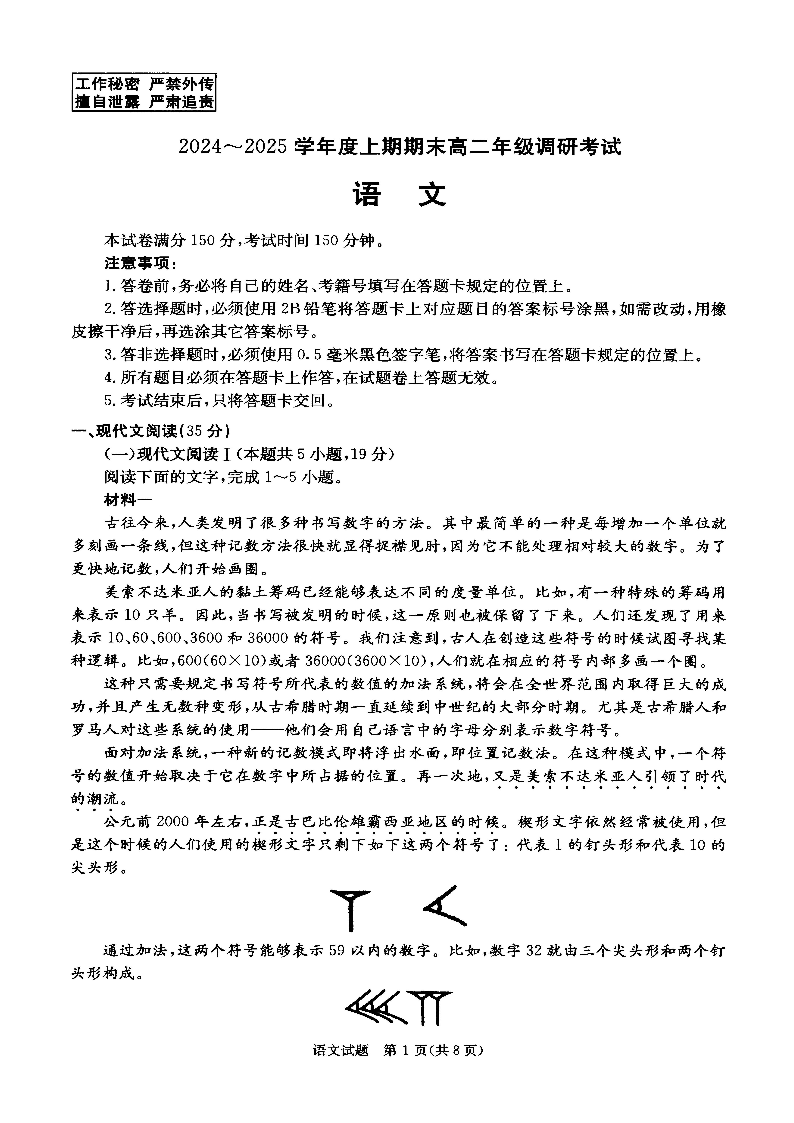 四川省成都市2024-2025学年上期高二期末统一调研考试语文