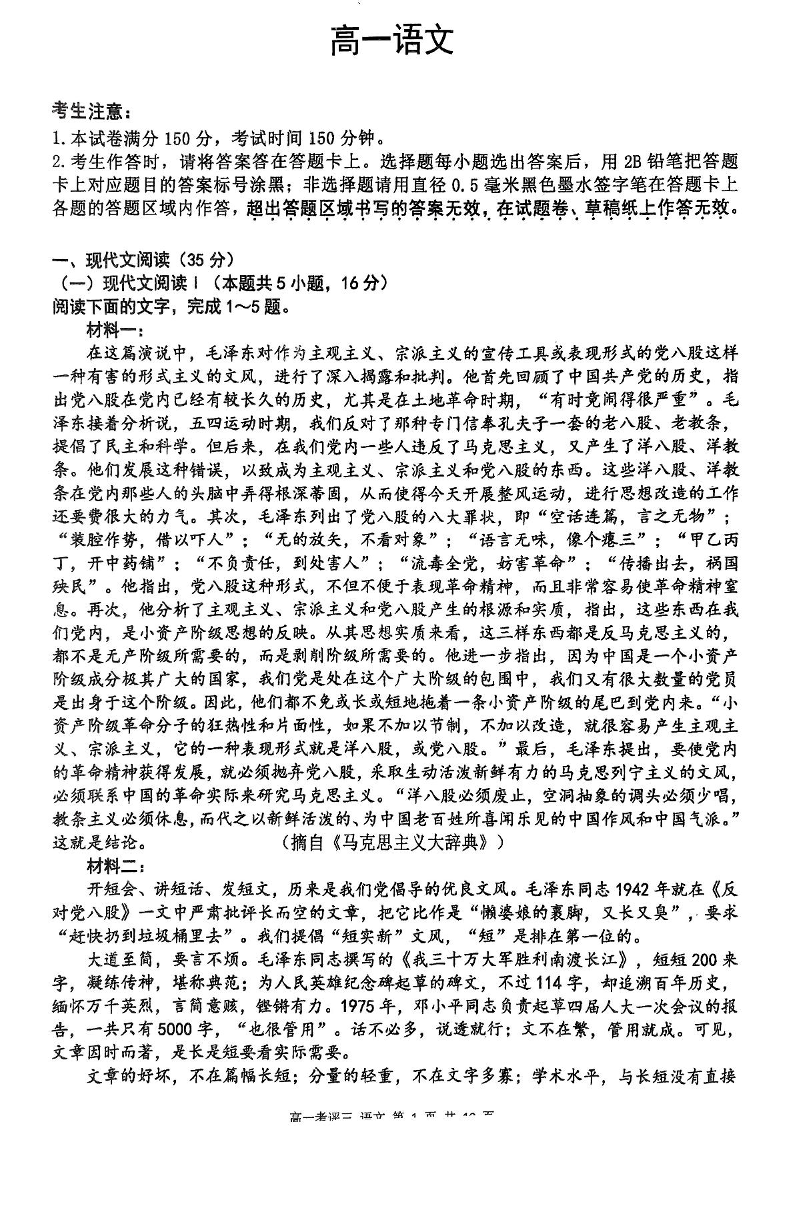 河北省保定市2024-2025学年高一上学期12月考评三语文+答案