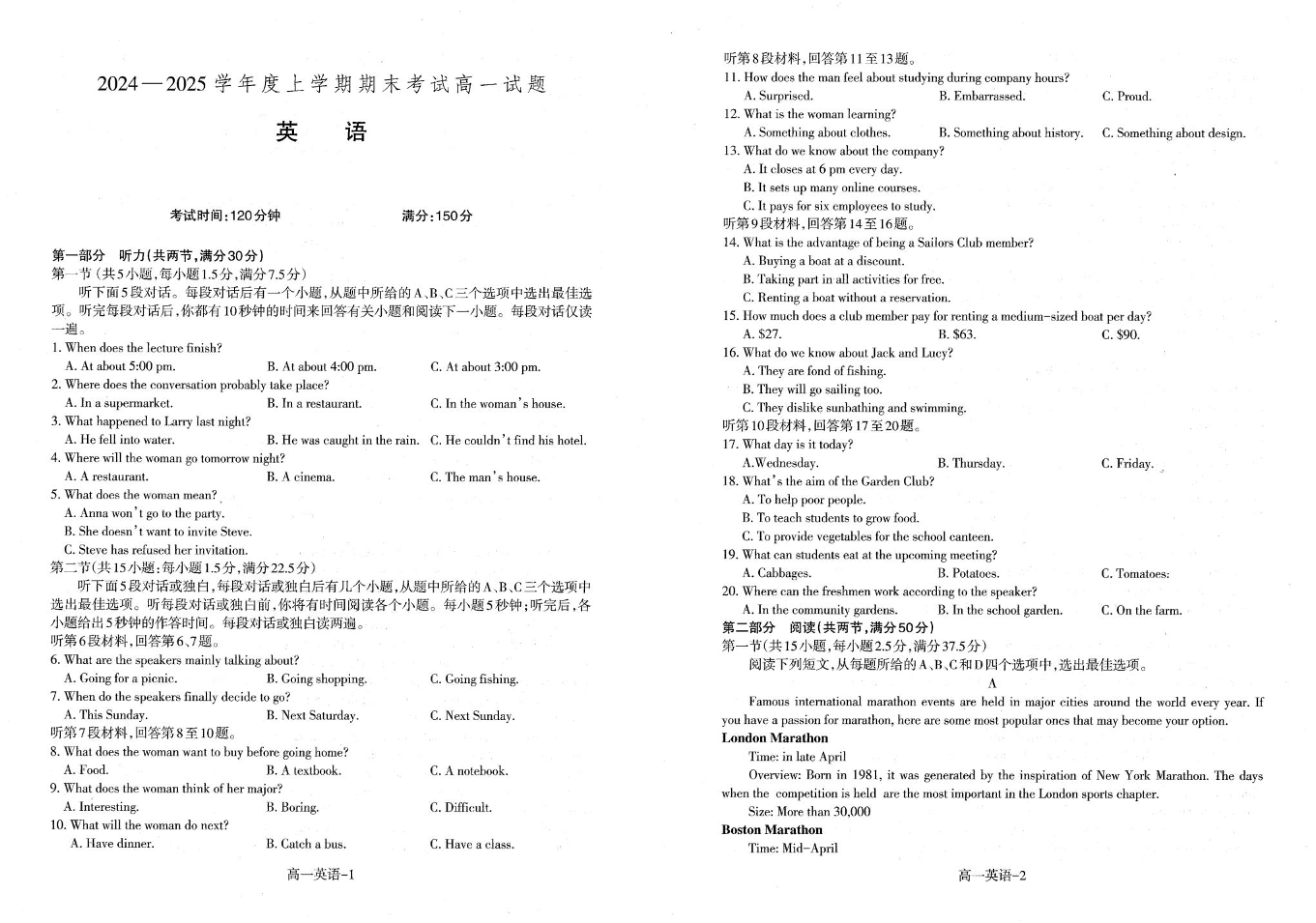 辽宁省普通高中2024-2025学年高一上学期1月期末考试英语+答案
