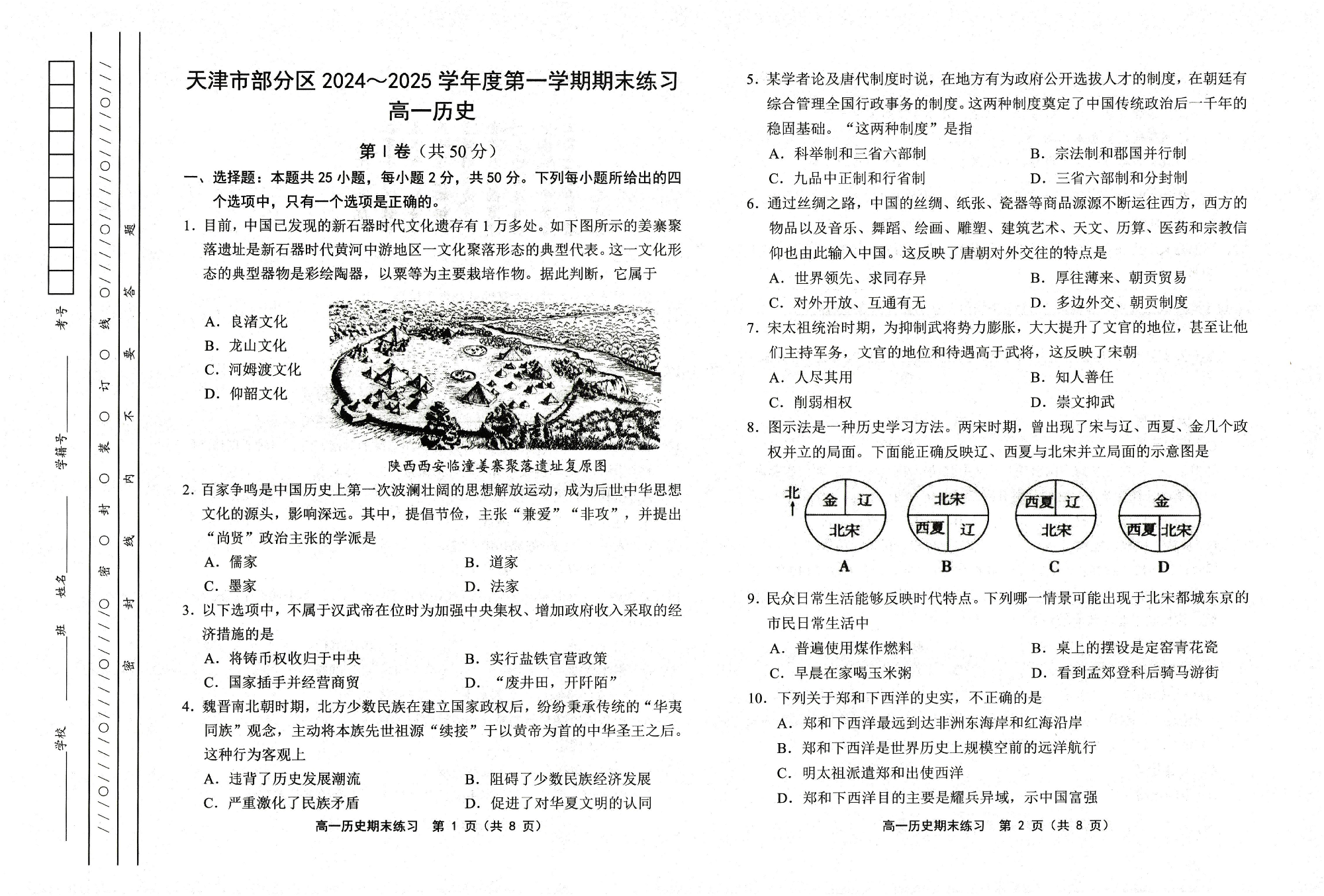 天津市部分区2024-2025学年上学期高一期末练习测试历史