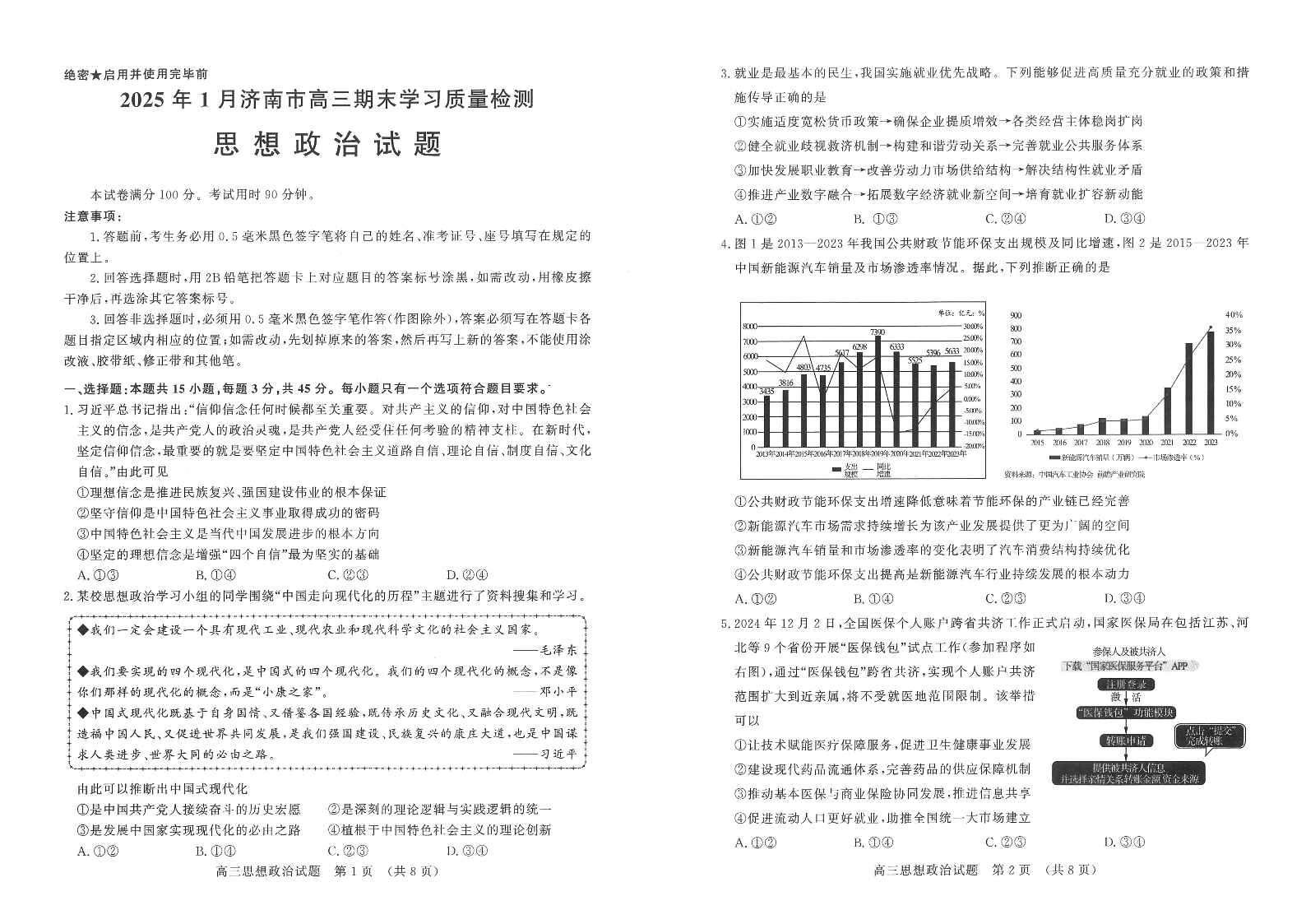 山东省济南市2024-2025学年上学期1月高三期末学习质量检测政治
