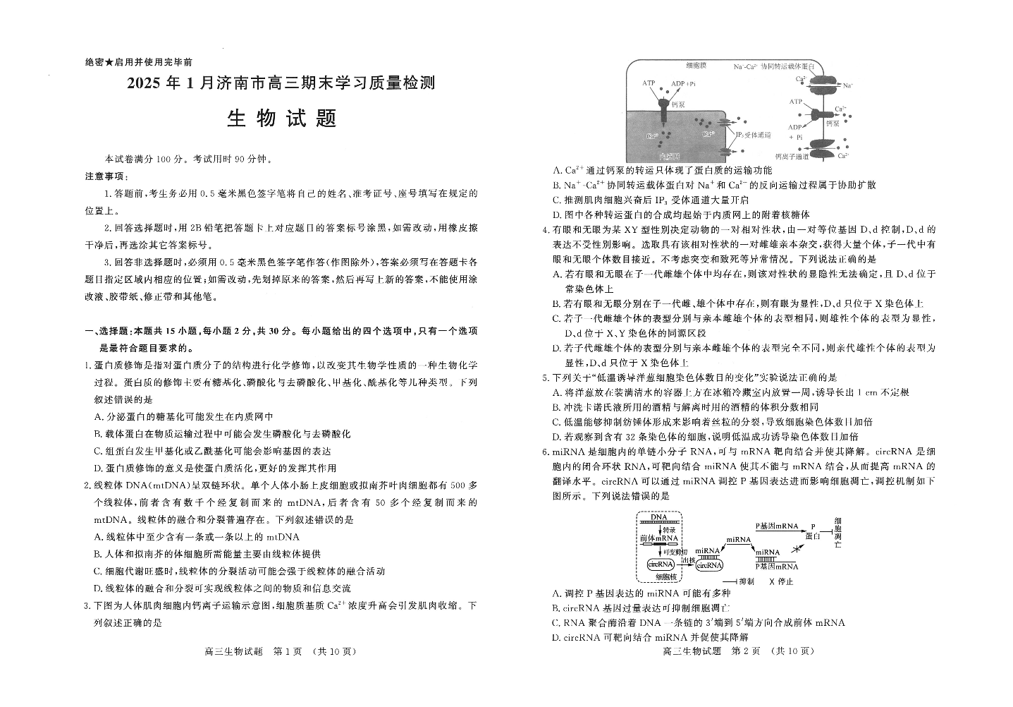 山东省济南市2024-2025学年上学期1月高三期末学习质量检测生物