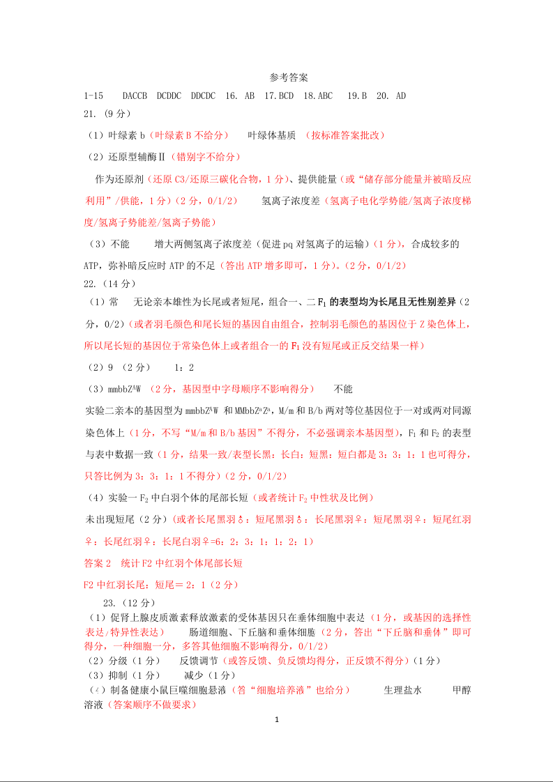 山东省济南市2024-2025学年上学期1月高三期末学习质量检测生物答案