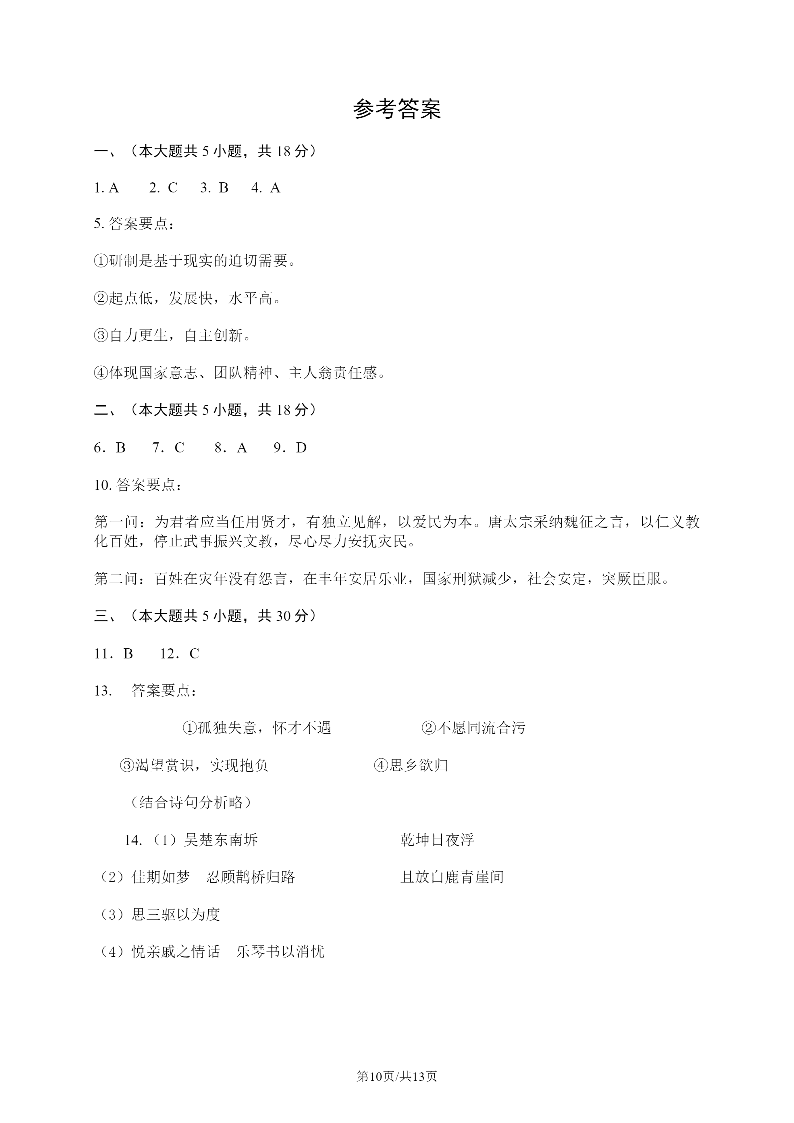 北京市东城区2024-2025学年第一学期高三期末统一检测语文答案