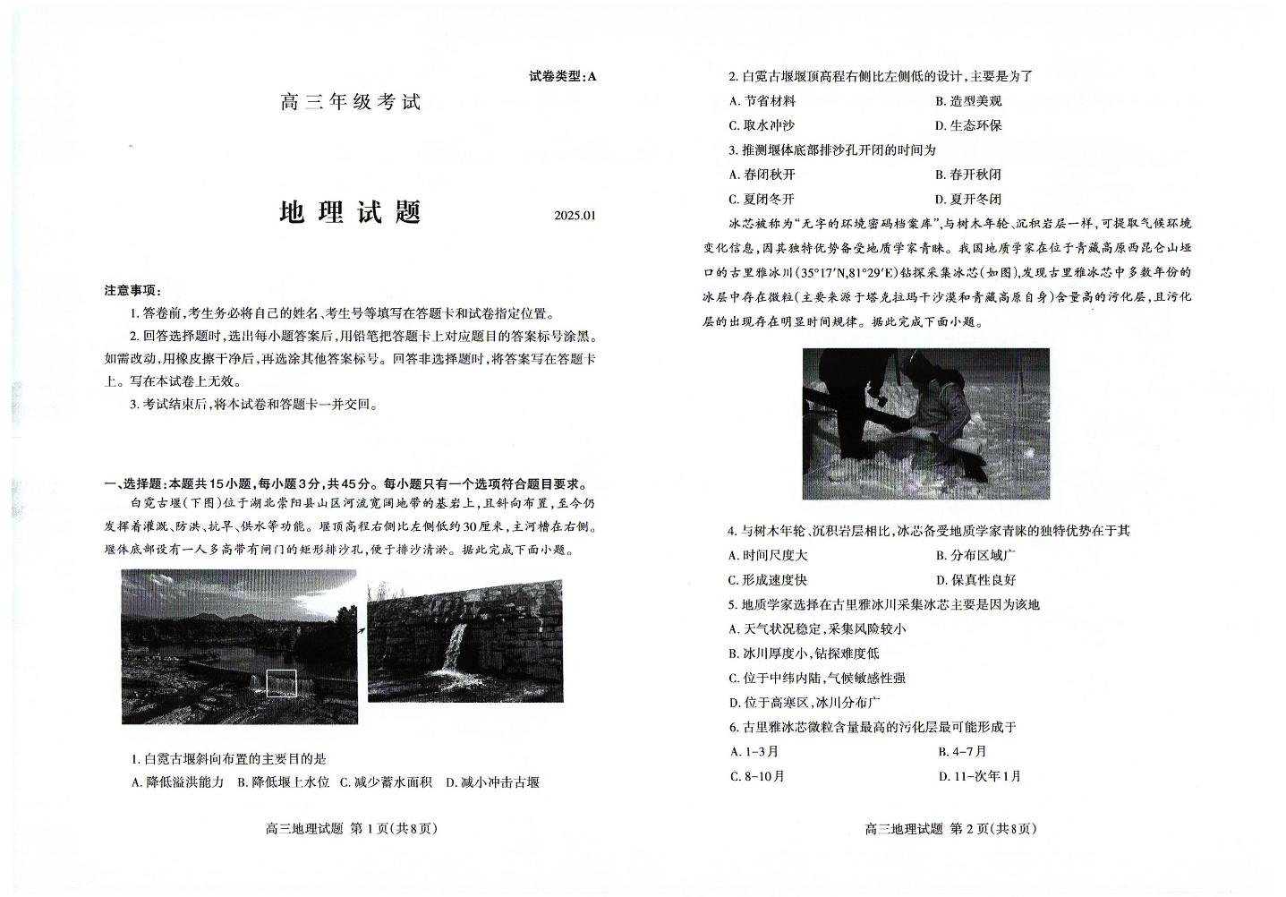 山东省泰安市2024-2025学年上学期1月高三期末考试地理